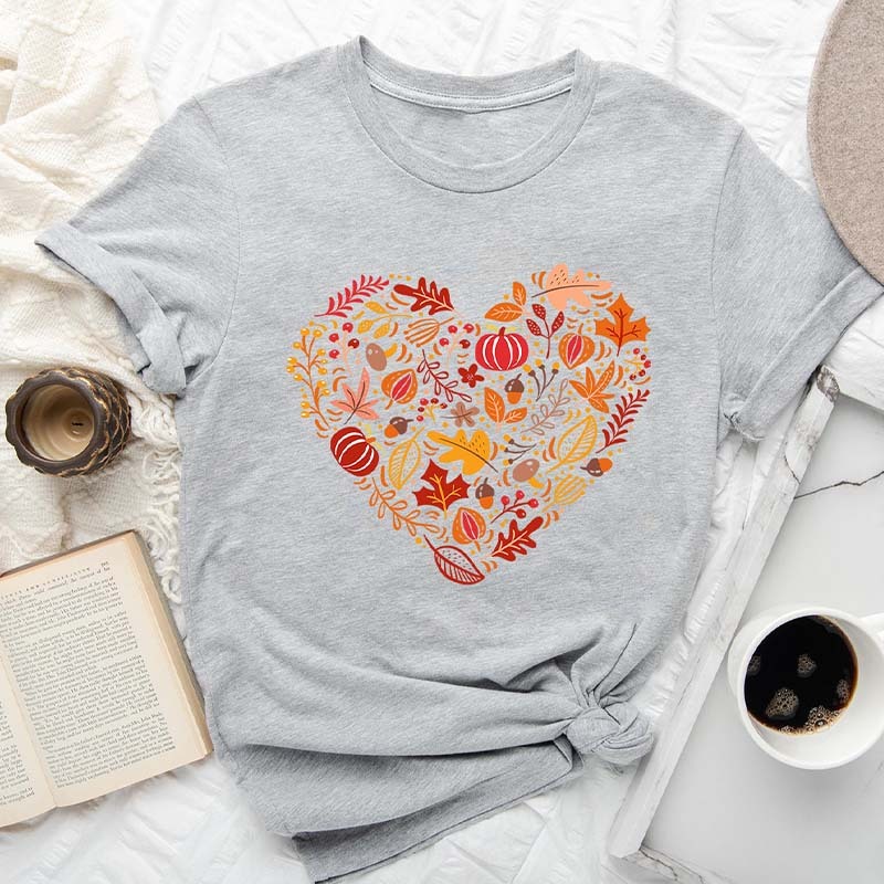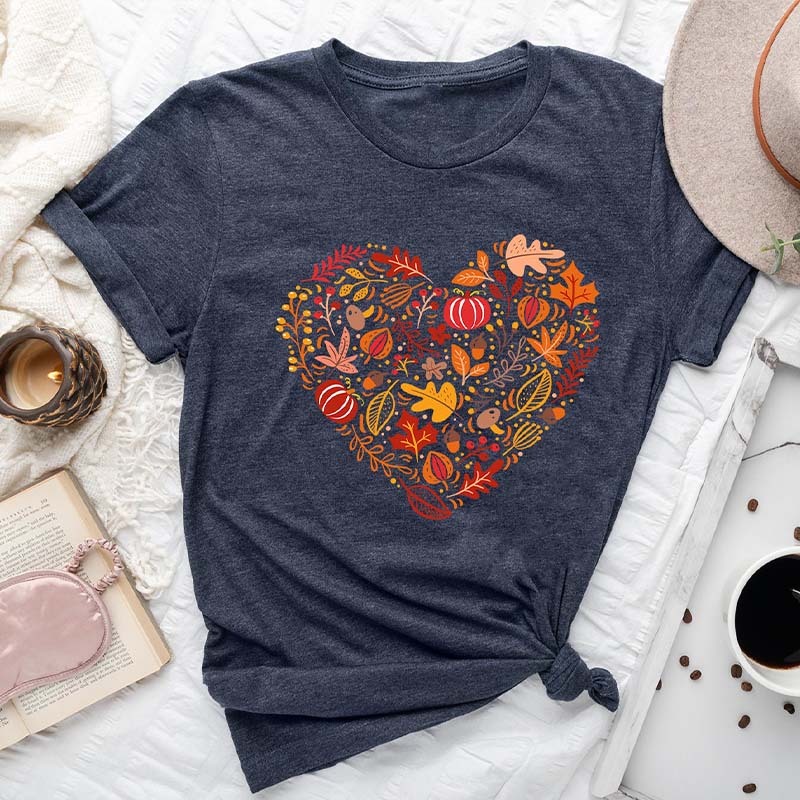 Fall Heart Leaves Doodles Pumpkin T-Shirt