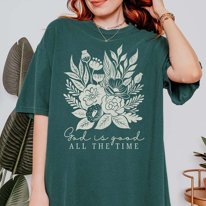 God Is Good Floral Bible Verse T-Shirt