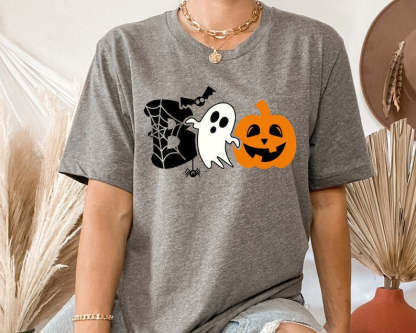 Halloween Pumpkin And Ghost Print T-shirt