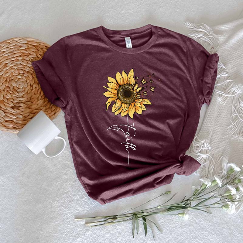 Religious Faith Sunflower Graphic T-Shirt