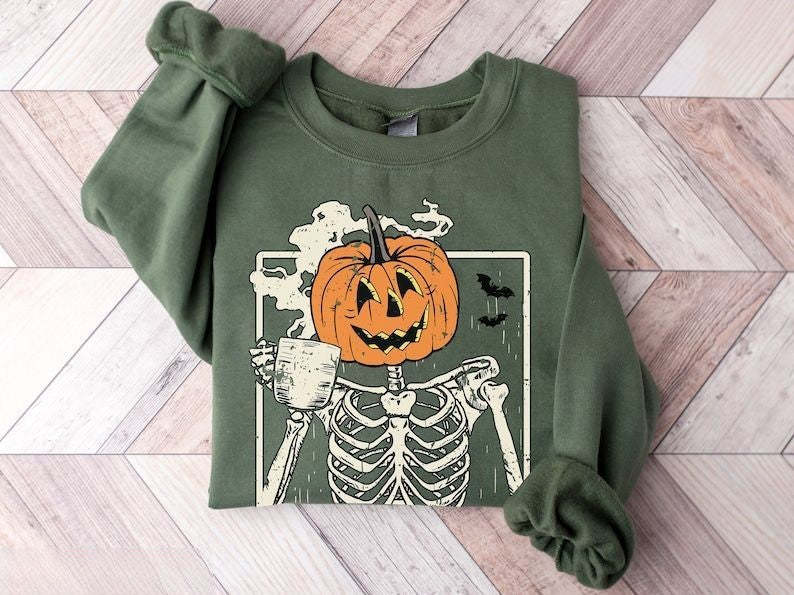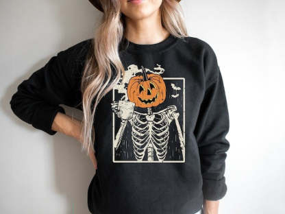 Skeleton Halloween Crewneck Pumpkin Sweatshirt