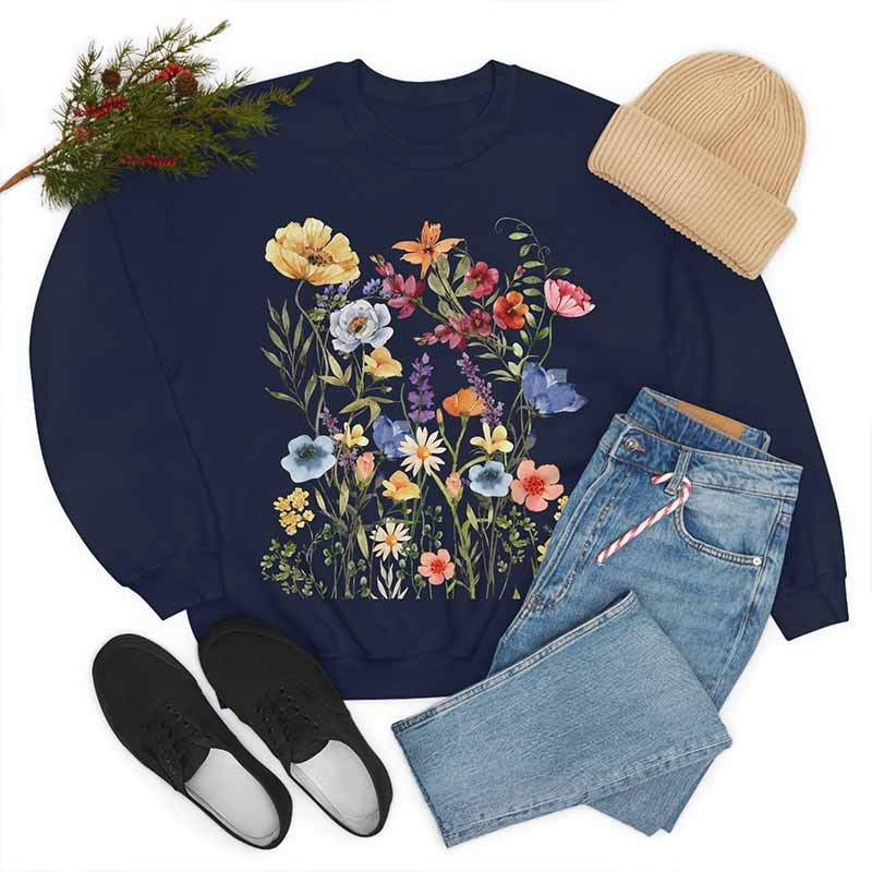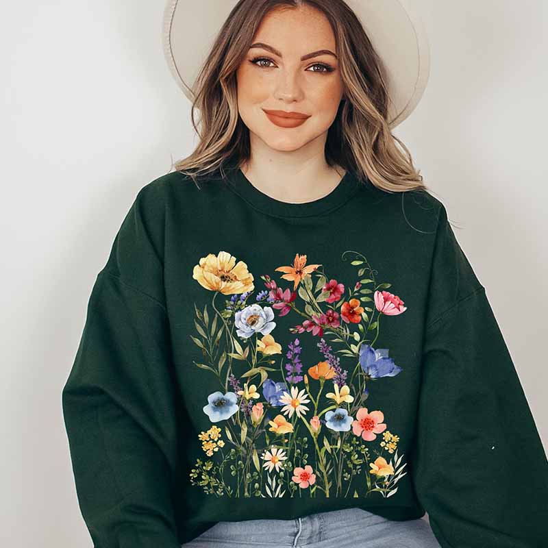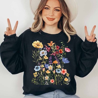 Vintage Pressed Flowers Botanical Boho Sweatshirt